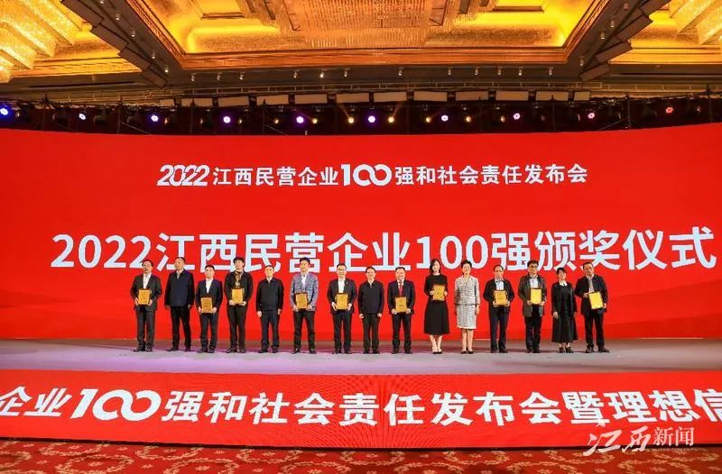 113日,2022江西民营企业100强和社会责任发布会暨理想信念教育报告会在南昌举行,会上发布了“2022江西民营企业100强榜单”、“2022江西制造业民营企业100强榜单”以及“2022江西服务业民营企业20强榜单”。